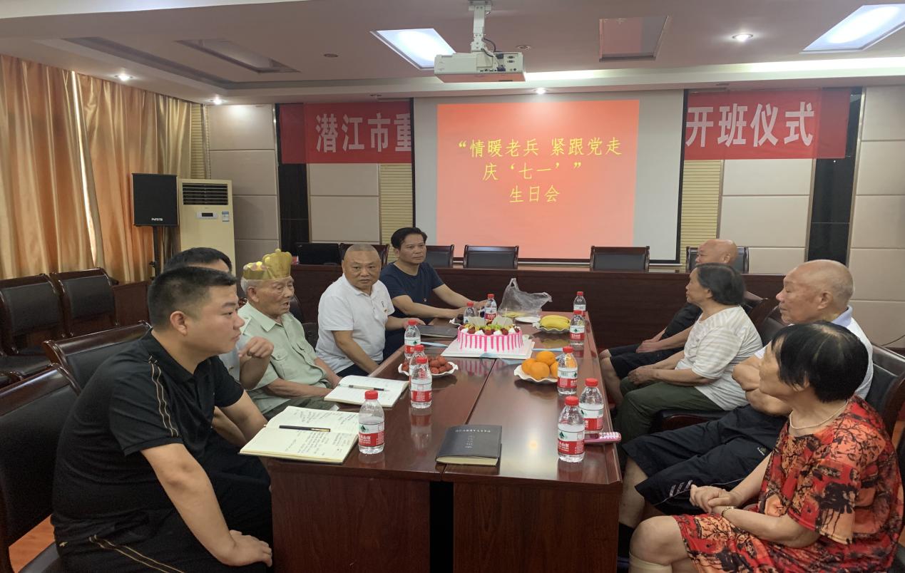 为庆祝中国共产党成立102周年,在七一来临之际,潜江市光荣院精心组织,开展“情暖老兵 紧跟党走庆‘七一’”生日会主题活动。