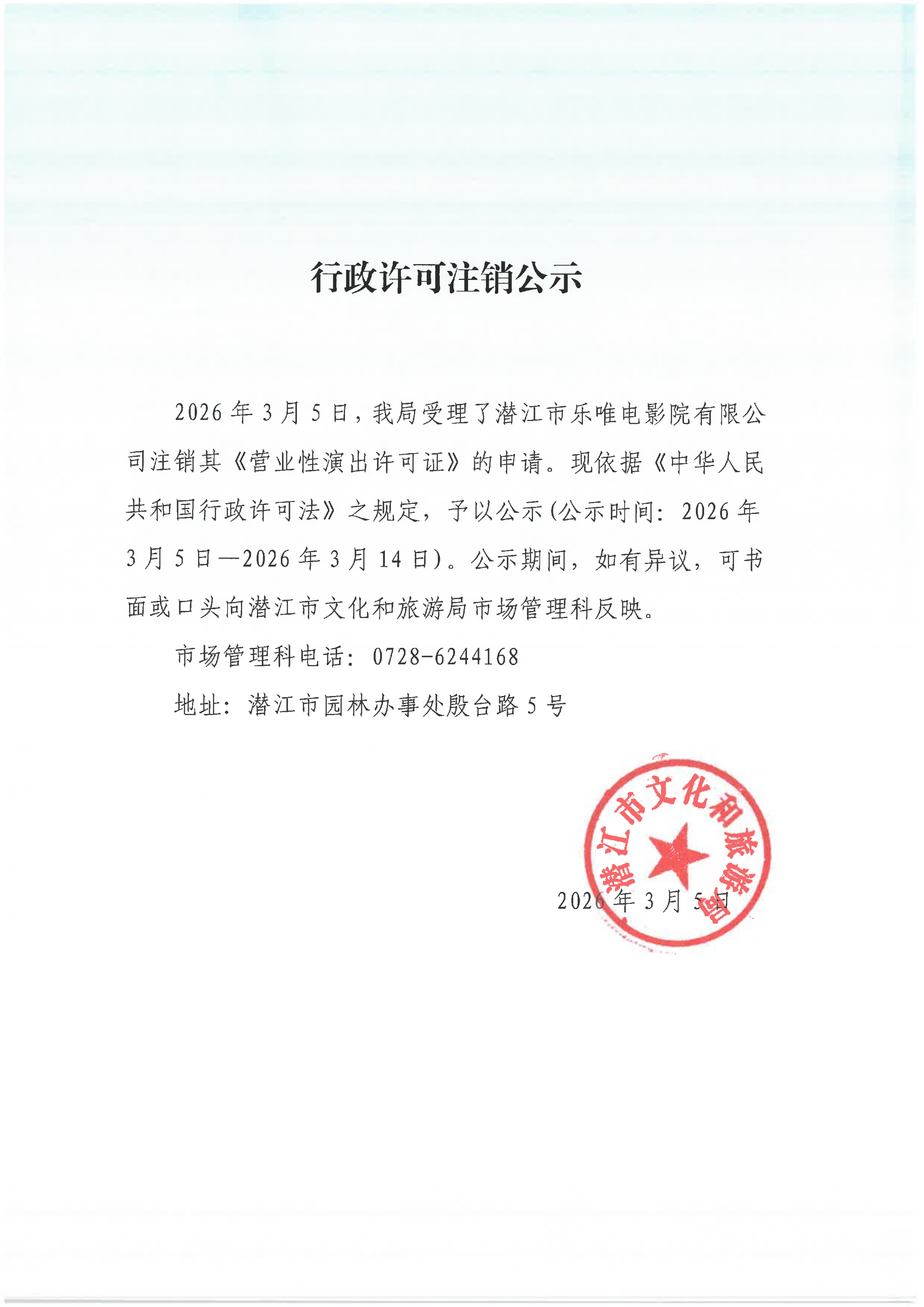 行政许可注销公示