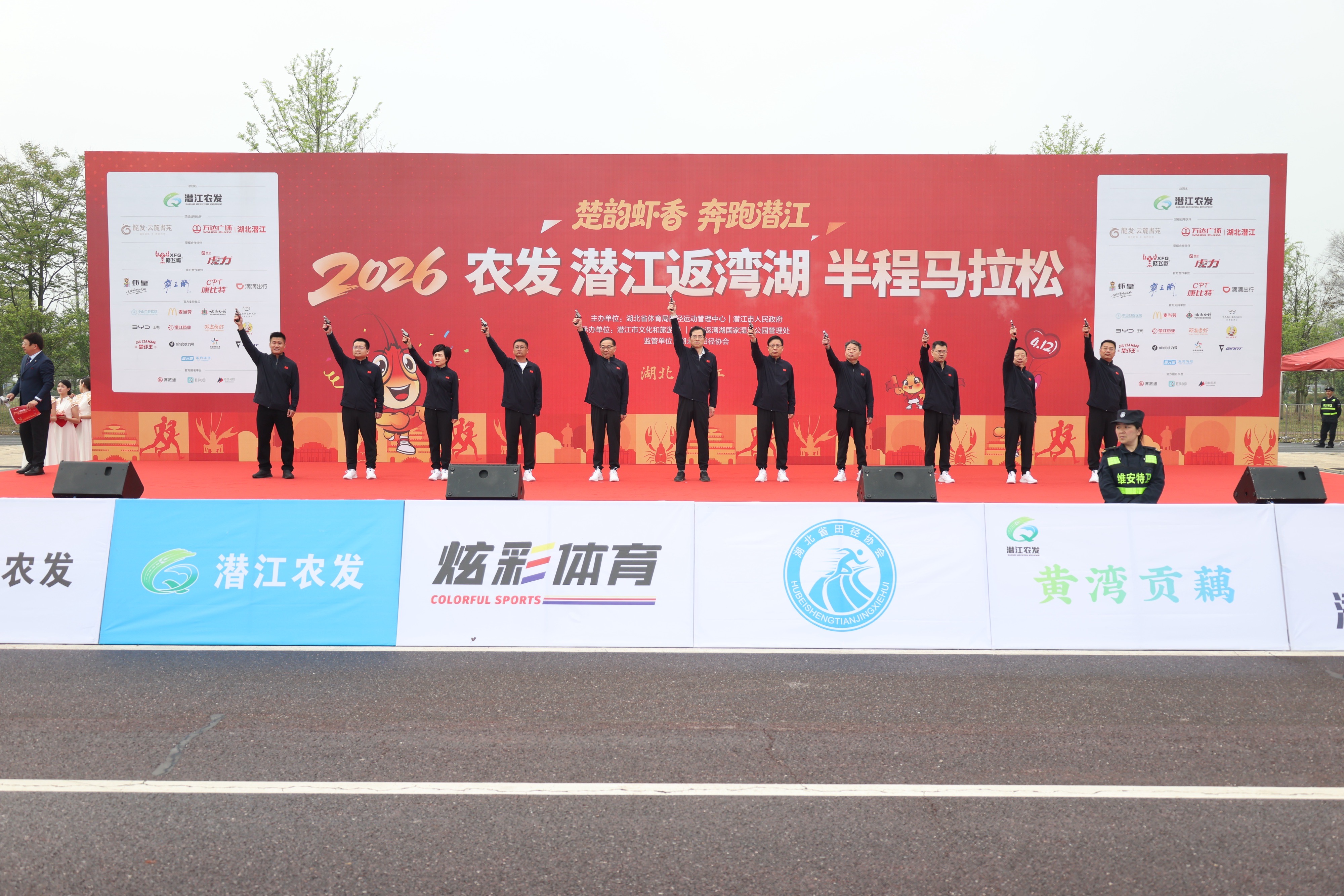 4月12日上午8时整,2026农发潜江返湾湖半程马拉松准点鸣枪开跑,6000名选手踏着春天的节奏,开启国家级湿地公园返湾湖赛道的半马之旅。