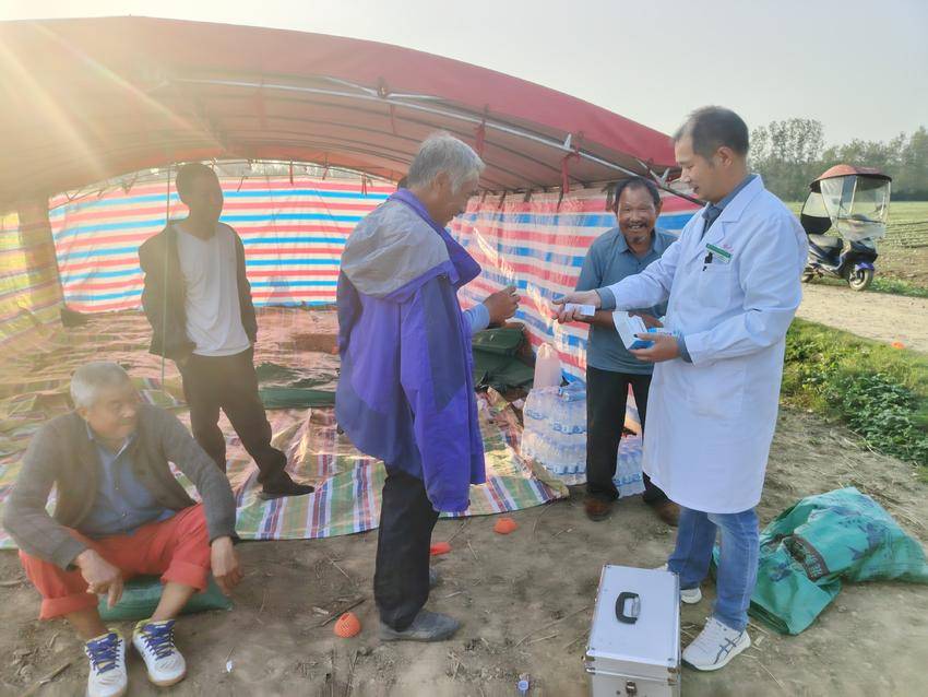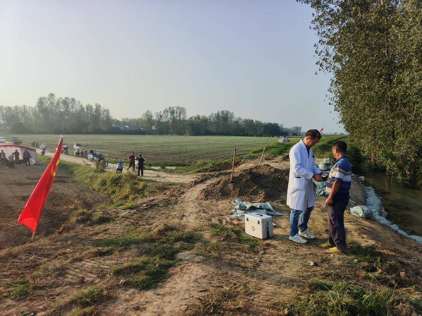 自10月9日起,医疗组队员为一线值守人员提供“上门式”医疗服务。他们携带便携式医疗设备,为大家测量体温、血压,详细询问身体状况,针对防汛期间易出现的感冒、外伤、高血压波动等问题,现场提供诊疗建议;同时发放健康宣传手册,重点普及饮水卫生、蚊虫防护、灾后消毒等知识,并按需发放感冒药、碘伏、创可贴、降压药等应急药品,全力保障防汛人员的身体健康。