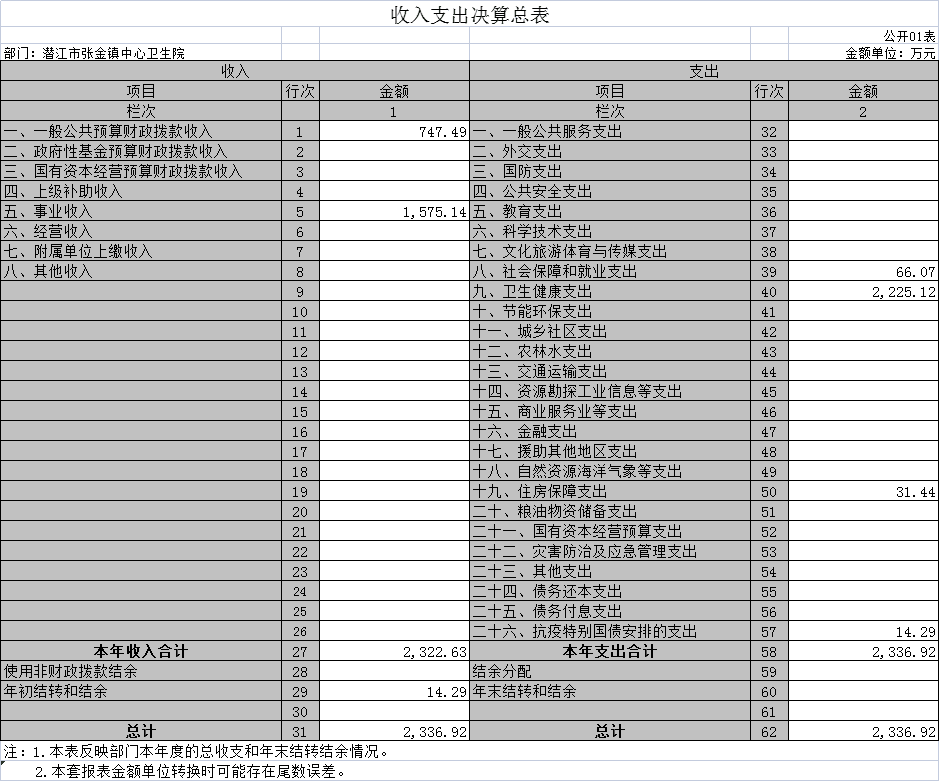 一、收入支出决算总表(公开01表)