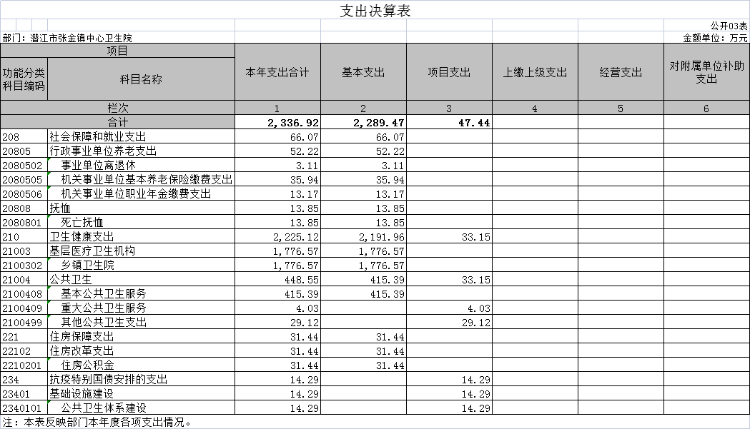 三、支出决算表(公开03表)