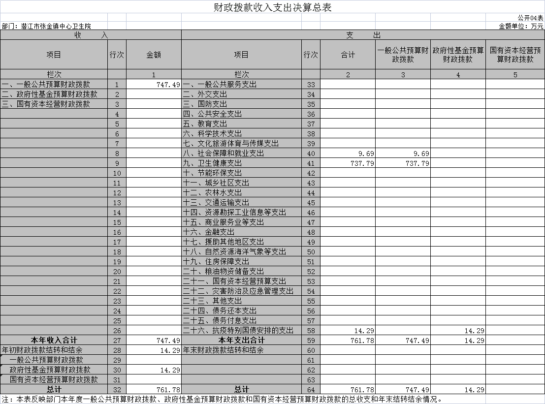 四、财政拨款收入支出决算总表(公开04表)