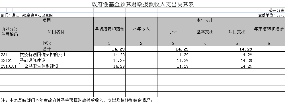 八、政府性基金预算财政拨款收入支出决算表(公开08表)