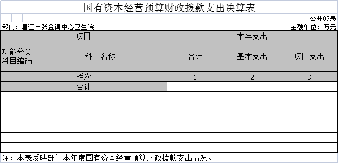 九、国有资本经营预算财政拨款支出决算表(公开09表)