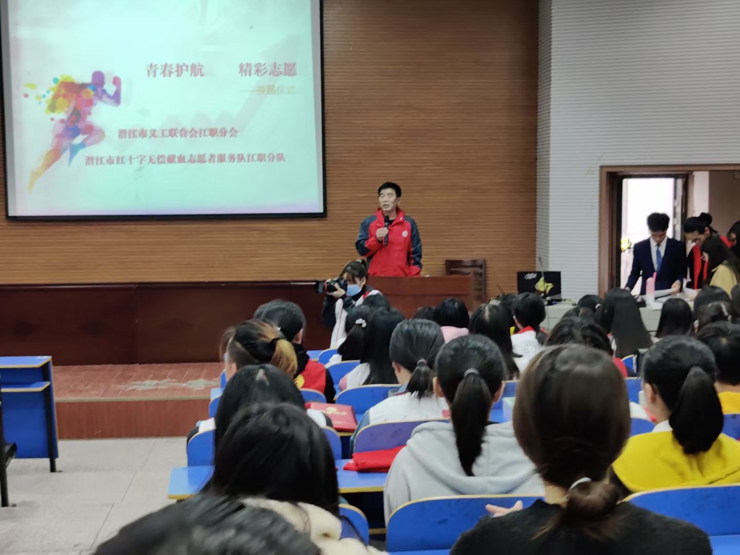 11月1日,市红十字无偿献血志愿者服务队江汉艺术职业学院分队2020级换届暨优秀志愿者表彰大会在学院8号学术报告厅隆重举行。60名纳新队员、分队在校队员及志愿者共计200余人参加活动。