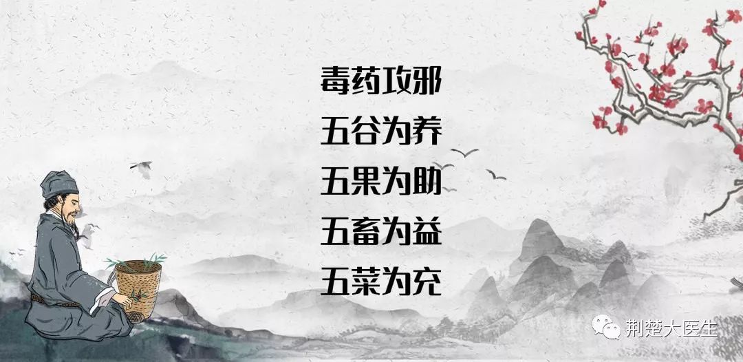 中医养生的饮食方法,遵循《黄帝内经》的饮食总纲: 毒药攻邪,五谷为养,五果为助,五畜为益,五菜为充。