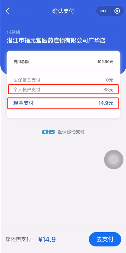 (注意:药品金额超出个人账户余额的部分,将使用微信余额进行支付。)