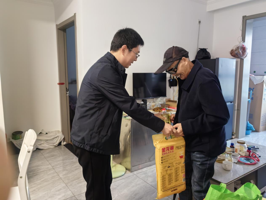 “郭大爷,最近身体怎么样?家里看病还方便吗?小区里有什么需要帮忙解决的问题,您尽管说。”在独居高龄老人郭光华家中,慰问组一行与老人促膝长谈,仔细询问其日常生活起居、健康状况及实际需求,一边为老人递上生活物资,一边认真记录老人对住房保障服务、小区物业管理提出的意见建议。得知老人因行动不便,有时需要协助办理生活事务,慰问组当场留下联系方式,叮嘱老人有困难随时联系,后续将协调社区与物业提供针对性帮扶。