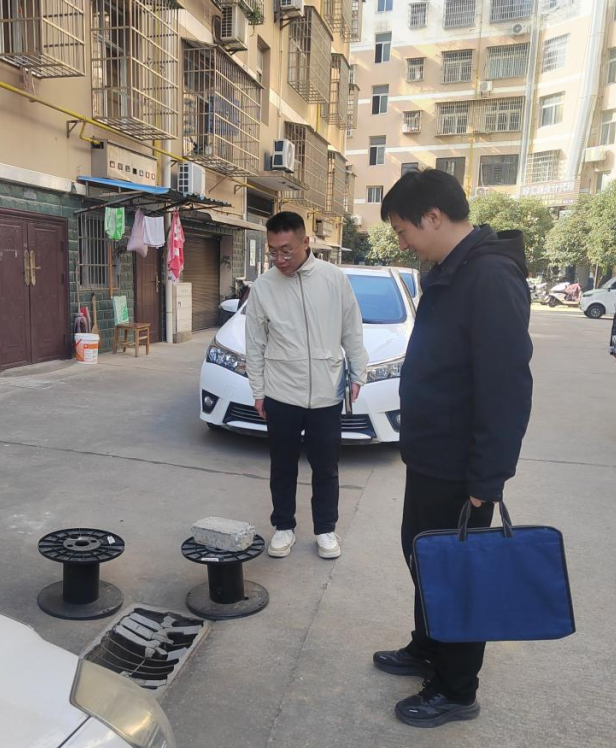 按照《潜江市党建引领物业服务提升行动方案》部署,市气象局包保太丰垸社区保驾岭小区、酱品厂小区和中波台小区。为精准掌握包保小区存在的突出问题,市气象局下沉工作队深入各小区开展走访调研。其中,保驾岭小区的井盖破损问题群众反映强烈,不仅花坛内的井盖存在破损,小区公共区域及侧门出口的井盖更是出现严重下沉,直接威胁出入车辆和人员的通行安全,成为居民的“心头患”。