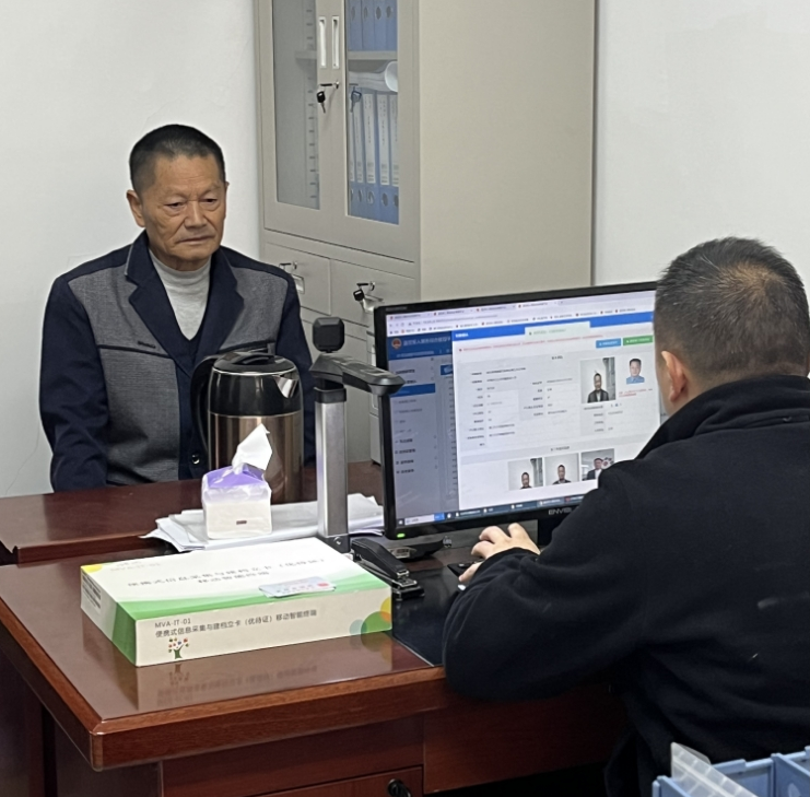 为做好认证工作,服务站采取“集中+上门+远程”三位一体的服务模式:一是组织集中认证,提前通知优抚对象携带身份证、户口本、退伍证等相关材料,在指定时间内到服务站办理现场认证;二是开展上门认证,针对年龄偏大、行动不便的服务对象,工作人员主动上门,入户办理认证手续,把服务送到家中;三是推行远程认证,对在外地居住或务工的优抚对象,通过电话、微信视频等方式进行线上核实,指导其使用退役军人专属APP完成认证,确保信息准确、更新及时。