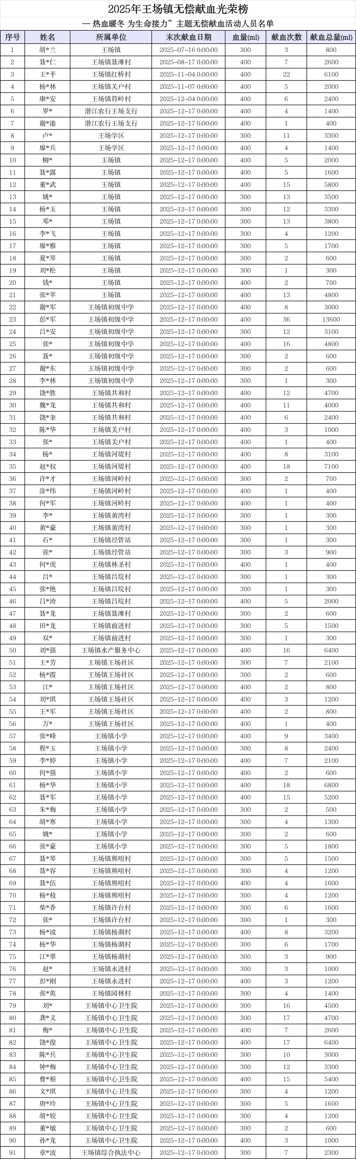 本次无偿献血活动,不仅为医院临床用血提供了有力支持,更彰显了王场镇干群心系社会、乐于奉献的良好精神风貌。据统计,本次活动共有91名爱心人士成功献血,累计献血量达31600毫升。下一步,王场镇将持续开展各类公益活动,带动更多群众参与到志愿服务中来,为建设和美乡村注入更多温暖力量。