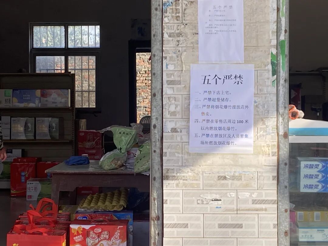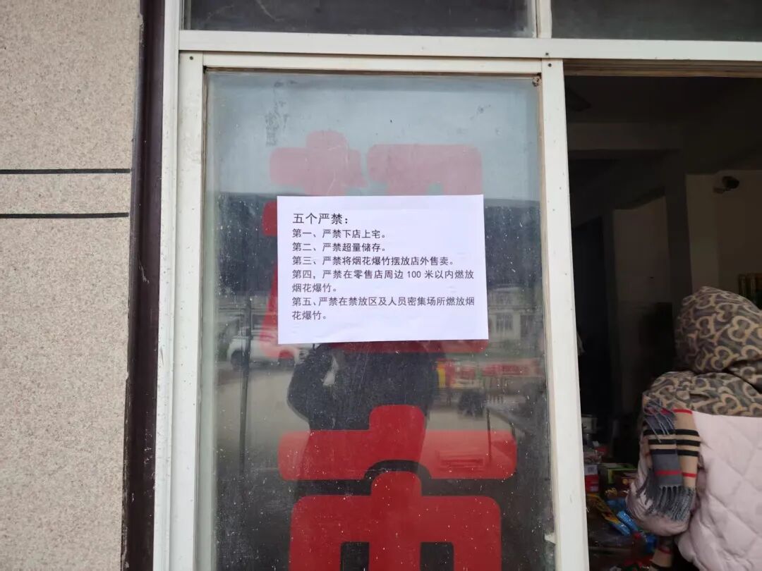 为确保各项措施落到实处,2月20日上午,镇党委副书记、镇长田成威、镇党委委员张远苹、镇人大常委会副主任王文昊带队,联合镇市场监管所、派出所、城建中心等职能部门组建专项检查组,深入全镇开展烟花爆竹安全专项检查。检查组一行重点对原烟花爆竹零售网点、集贸市场、废旧厂房以及可能从事非法生产、储存的重点区域进行了拉网式排查。检查过程中,检查组一行详细询问了各场所的安全管理情况,并叮嘱相关负责人要严格遵守安全规定,严禁非法经营和超量储存。检查组还对是否存在“下店上宅”、前店后库、超范围经营以及消防设施配备等情况进行了细致核查,对发现的问题现场提出整改意见,要求立行立改,确保隐患闭环管理。