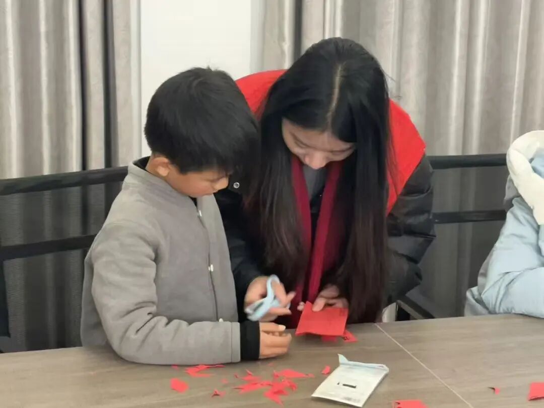 活动中,志愿者老师耐心教导,孩子们神情专注,小手小心翼翼地转动着红纸。他们有的严格按照图样,剪出一丝不苟的对称花纹;有的则发挥天马行空的想象力,创作出独一无二的创意窗花。红纸翻飞间,童真与传统文化悄然融合。