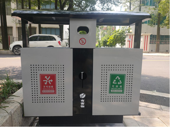 近期,管理区投入资金5万元左右,在道路两旁新增22个分类垃圾桶,新建5个居民生活垃圾分类投放点。