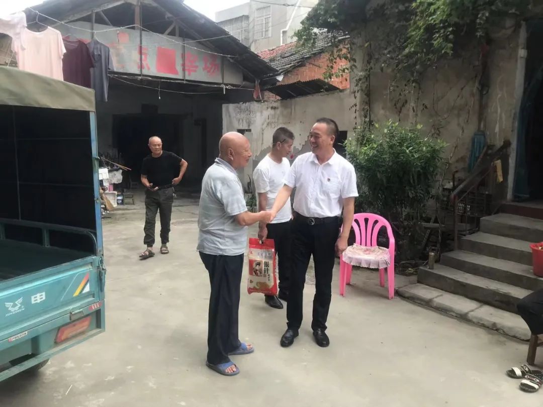 镇党委副书记、镇长夏华华感谢新沟村老党员黄发坤一直以来为党、为政府作出的贡献,并送上慰问金,表达对他们的关怀和敬意,同时希望老党员、老同志继续保持党员本色,不忘初心,发挥余热,一如既往地关心支持党和政府工作,共同把家乡建设得更加美好。