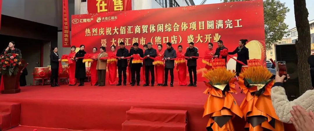 1月12日上午,伴随着一阵阵激昂的锣鼓声,大佰汇商贸休闲综合体项目圆满完工暨大佰汇超市(熊口店)正式开业,潜江市商务局、招商局、供销社、发改委相关领导,熊口镇党委书记张振成,党委副书记、镇长夏华华等同志出席开业剪彩仪式,这标志着又一个民生项目落地完工。活动现场,宾客云集,整个现场洋溢着欢乐、祥和、喜庆的热闹气氛。