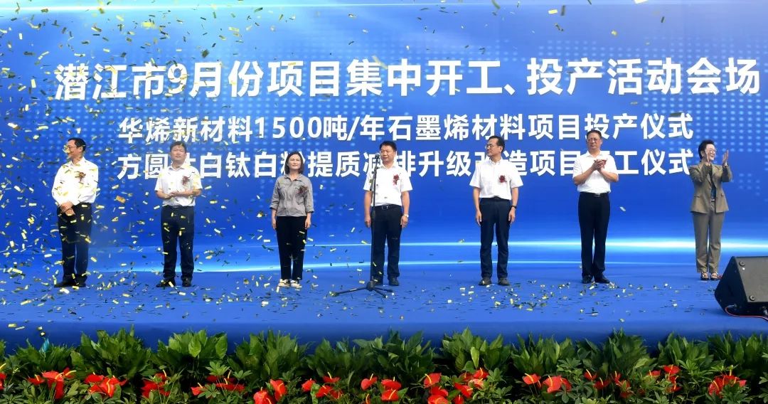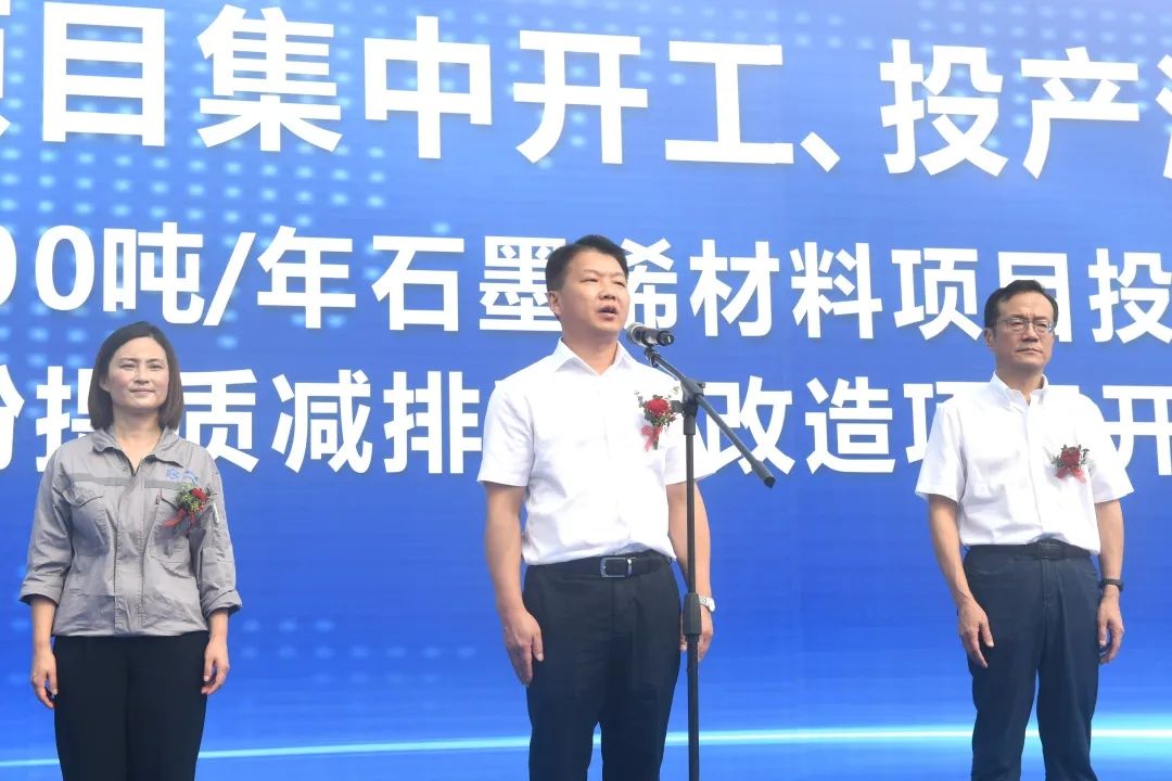 上午9时30分,向斌宣布,华烯新材料石墨烯材料项目竣工投产、方圆钛白钛白粉提质减排升级改造项目开工。
