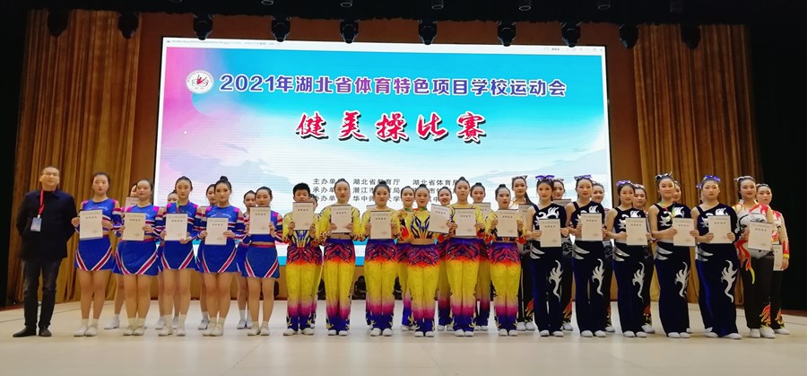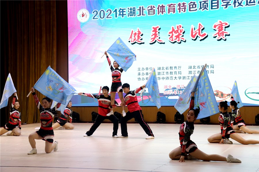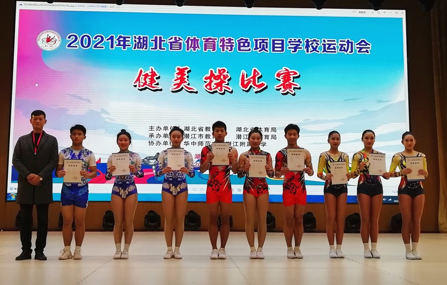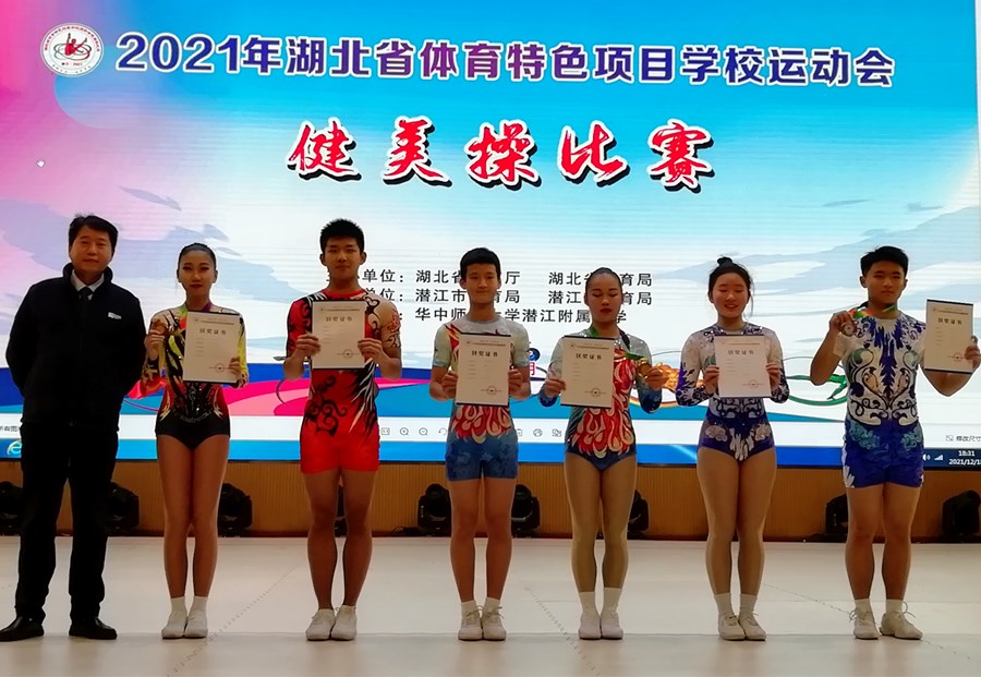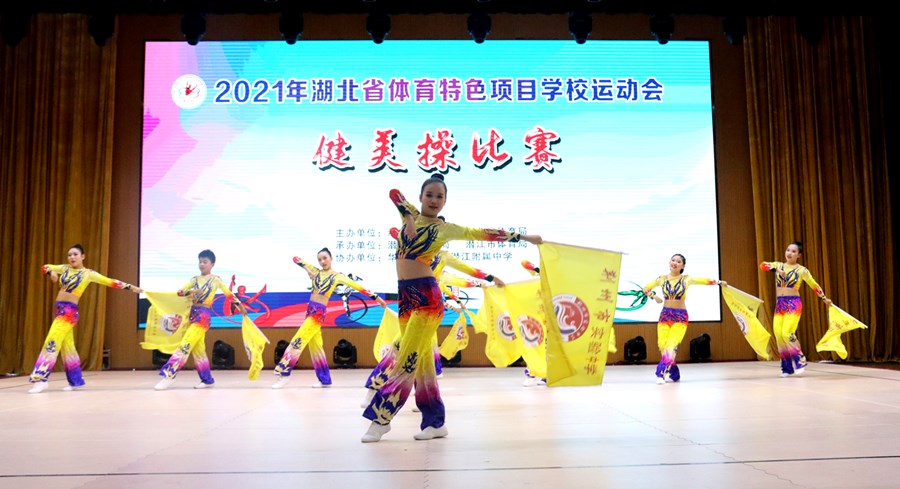 12月18至19日,2021年湖北省体育特色项目学校运动会健美操比赛在华中师范大学潜江附属中学举行,来自全省各地学校的13支代表队、223名运动员齐聚“龙虾之乡”潜江,同场竞技交流。