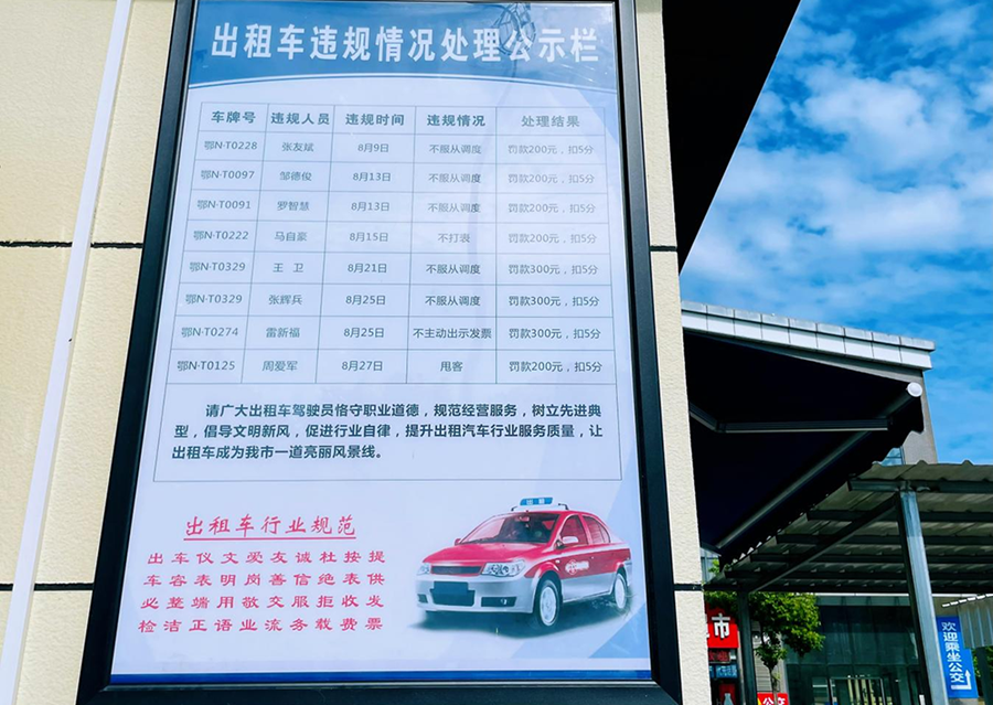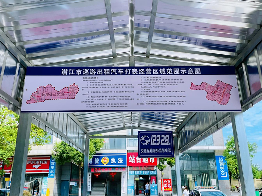 近日,细心的市民陈女士在潜江火车站乘坐出租车时发现,火车站出租汽车候客区和出租车进站通道不仅悬挂了出租汽车打表经营区域范围示意图、出租汽车违规情况处理公示栏,还新增加了一条专用匝道。