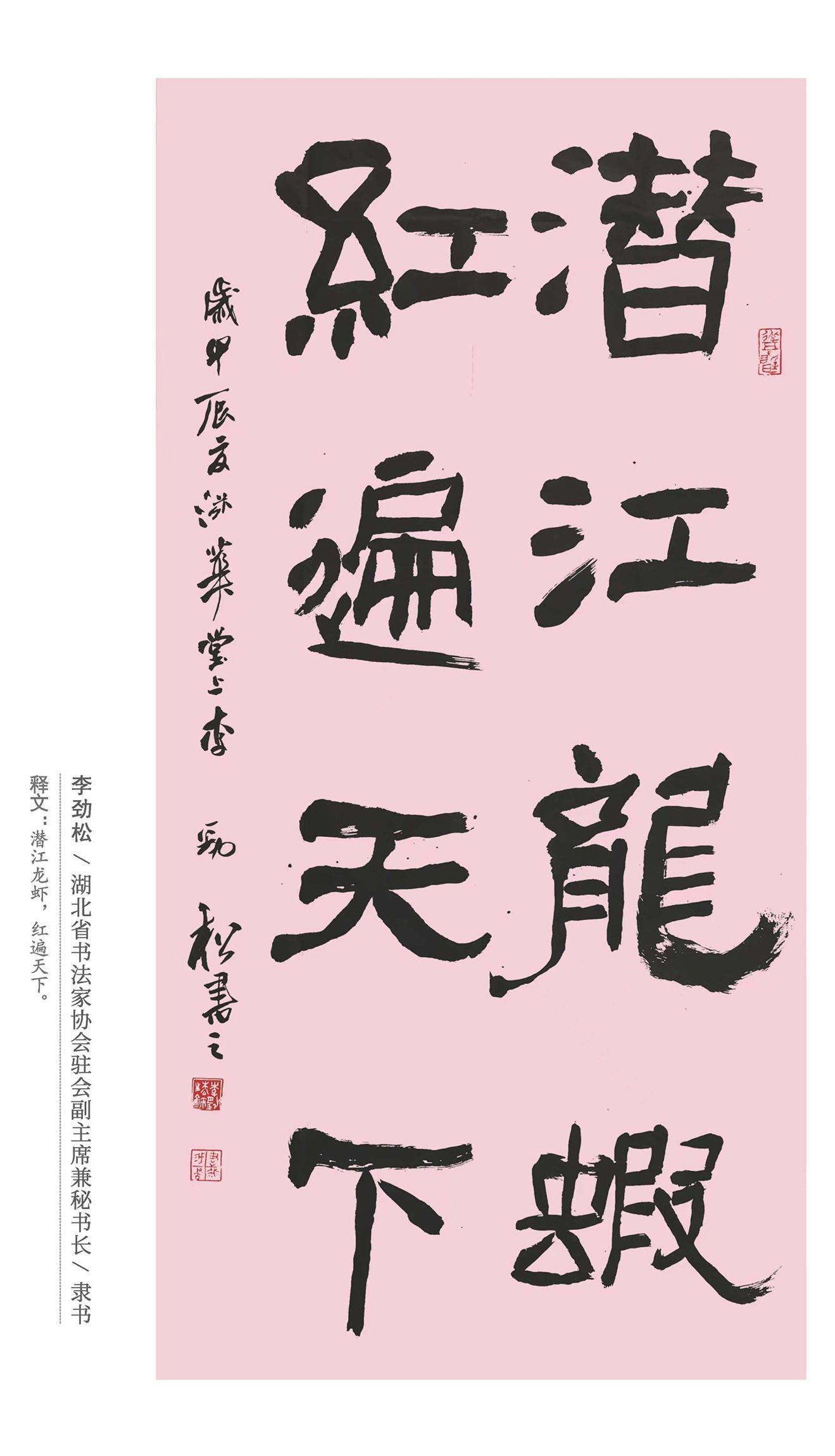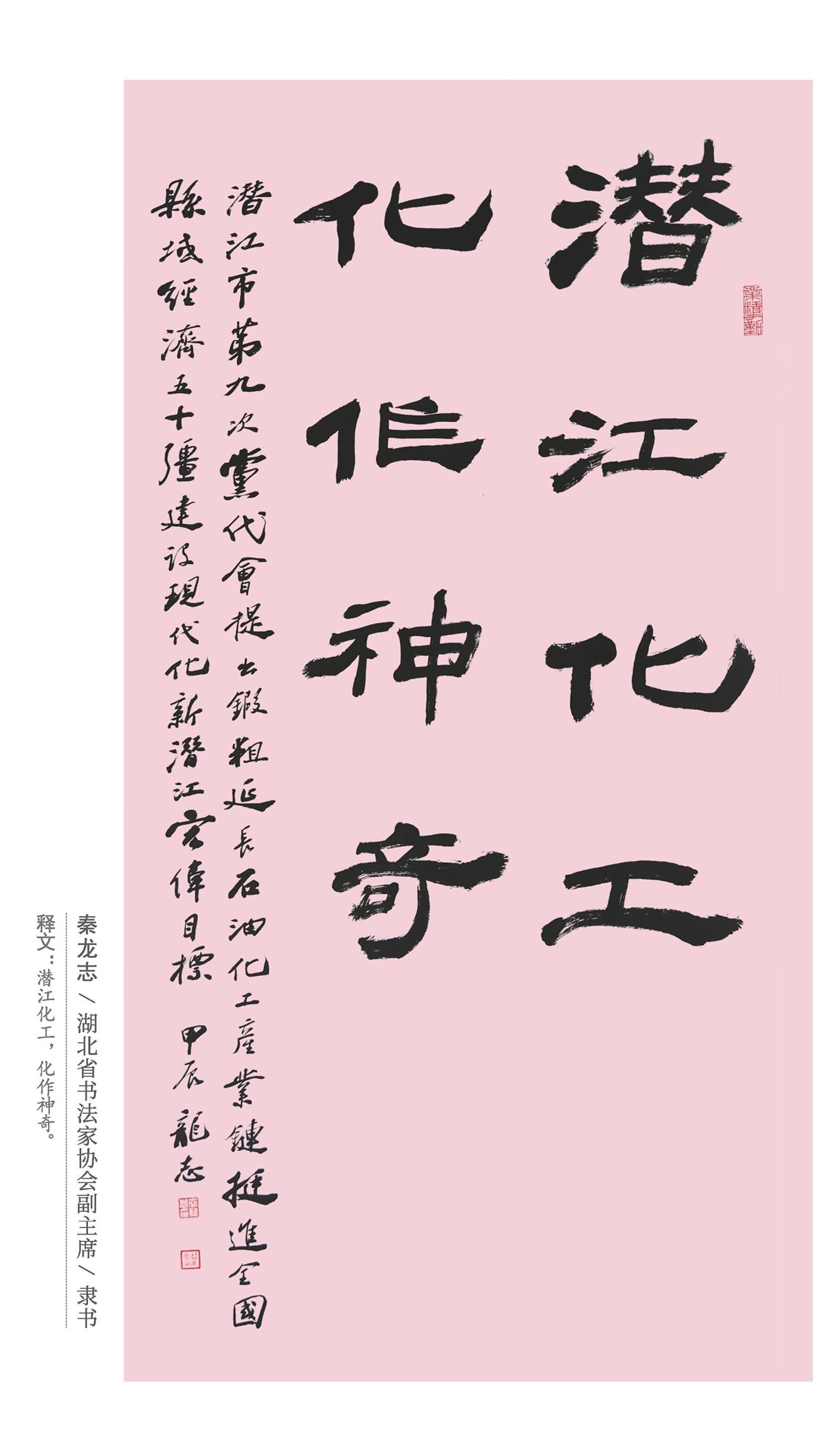 “奋进:四化同步示范先行”主题书法展如同一幅徐徐展开的艺术长卷,在城市的文化殿堂中绽放光彩。本次展览以书法艺术为载体,分为潜江龙虾、潜江芯光、潜江裁缝、潜江虾稻等10个主题,集中展示了100余幅具有思想性、艺术性和观赏性的书法作品。展览现场,墨香四溢,一幅幅书法作品龙飞凤舞、力透纸背。书法家们用笔墨抒发对潜江发展的美好愿景,有的作品笔势雄奇,姿态横生,传达出对城市现代化建设的热情赞颂;有的作品则笔法精妙,端庄秀丽,蕴含着对同步推进工业化、信息化、城镇化和农业现代化的深刻思考。参观者们在作品前驻足欣赏,细细品味,仿佛能感受到书法家们在创作时的激情与豪迈。此次书法展不仅为广大书法爱好者提供了一个交流学习的平台,更是通过艺术的形式,激发了市民对潜江市四化同步发展的关注和支持。