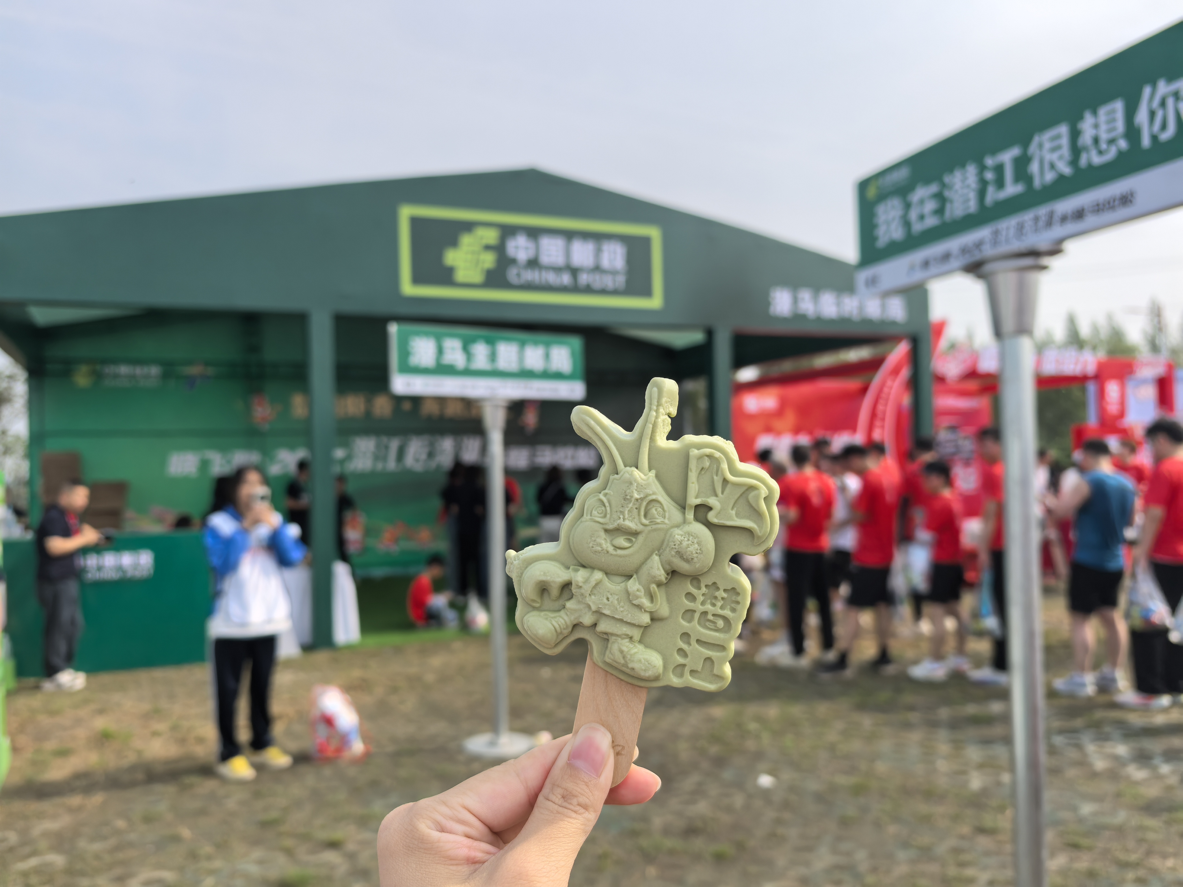 据了解,为更好地服务赛事、展示潜江特色,该公司在马拉松赛事现场设置了“临时邮局”,并创新推出文创雪糕火热“出圈”,让“潜马”旅程甜蜜加倍。雪糕设计了草莓、鲜奶、抹茶、哈密瓜四种风味,造型为一只举着旗子的小龙虾,仿佛一位活力四射的拉拉队员在为每一位奋力奔跑的选手呐喊助威,吸引了众多跑友排队,只为品尝这一口独特的美味。同时,该公司还定制了两款“马拉松”、一款“潜江地标”特色明信片,在“临时邮局”提供特色邮戳加盖、有声明信片DIY、奖牌刻字、叶雕书签、照片定制等服务,让跑友们在享受美食的同时,留下独特的赛事记忆。