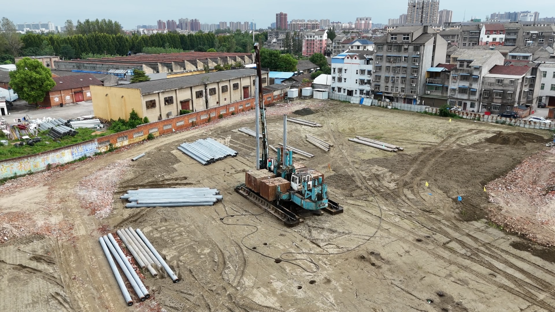 潜江新闻网讯(潜江市融媒体中心记者 周莹 艾帅)近日,三江路辉煌农超市场项目施工现场机械轰鸣,打桩机有序作业,工人们配合默契开展桩基建设,一派热火朝天的建设景象。