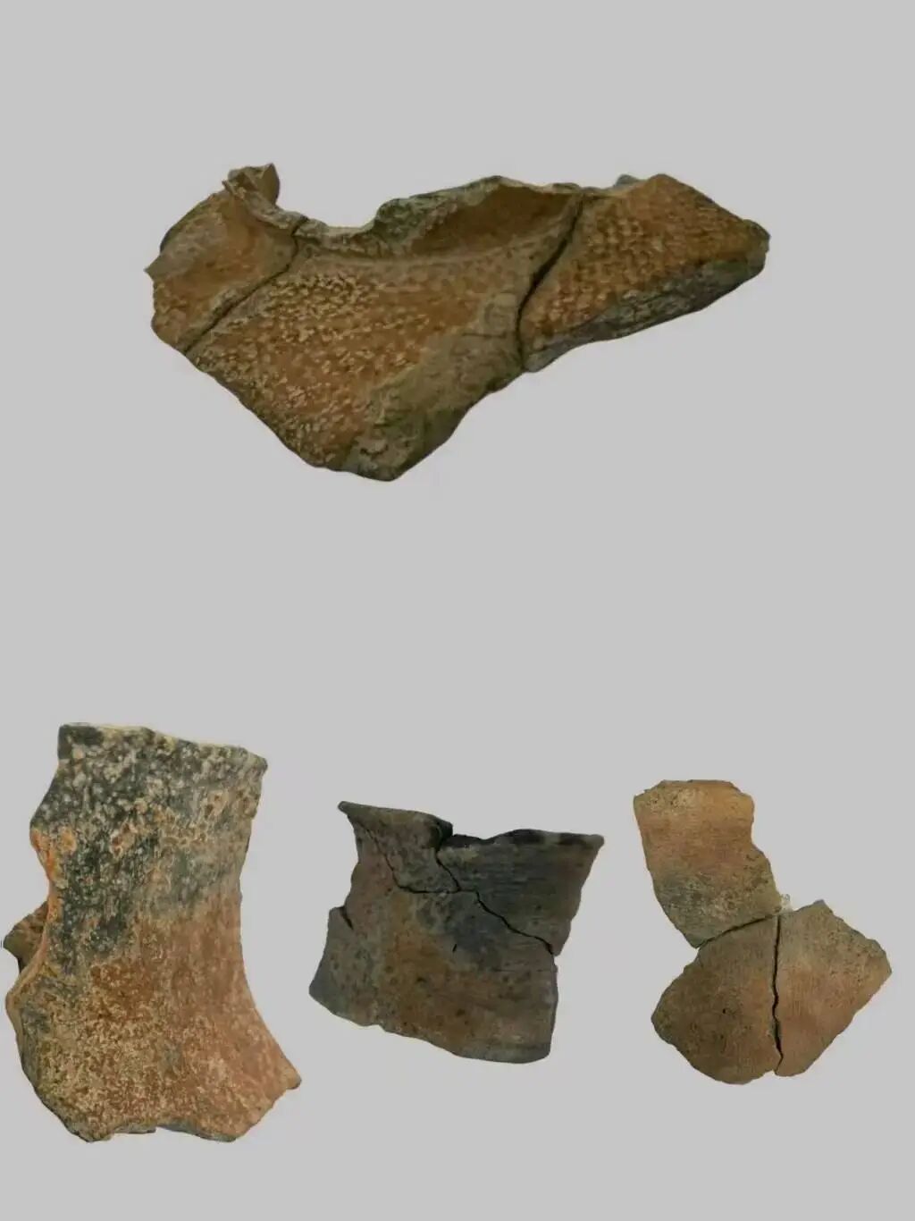 此次发掘出土的陶片具有鲜明特征,以红褐陶为主,少量为灰褐陶。陶器器形以各种罐、釜为主,其中长颈带耳深腹罐、小口高领罐、马鞍形支座等较为典型,与湖南澧县彭头山文化出土陶器最为接近。考古项目现场负责人表示,“这对于认识江汉平原本土文化来源和区域间文化交流融合具有重要意义。”同时,遗址发现的三足钵及其他三足器,应来源于中原地区的贾湖文化,说明在距今8500年的新石器时代早期,长江中游地区与中原文化之间就存在文化交流。