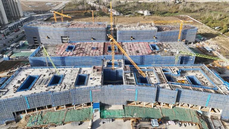 我市新型城镇化补短板强弱项一期(市中心医院项目)项目建设现场,各楼栋正陆续封顶,预计12月底完成主体结构施工。该项目2024年12月开工,总建筑面积20万平方米,建设资金12亿元,包含门诊、医技、住院等14栋建筑,预计2027年完成全部工程建设。(记者 曾俊伟 刘列刚)