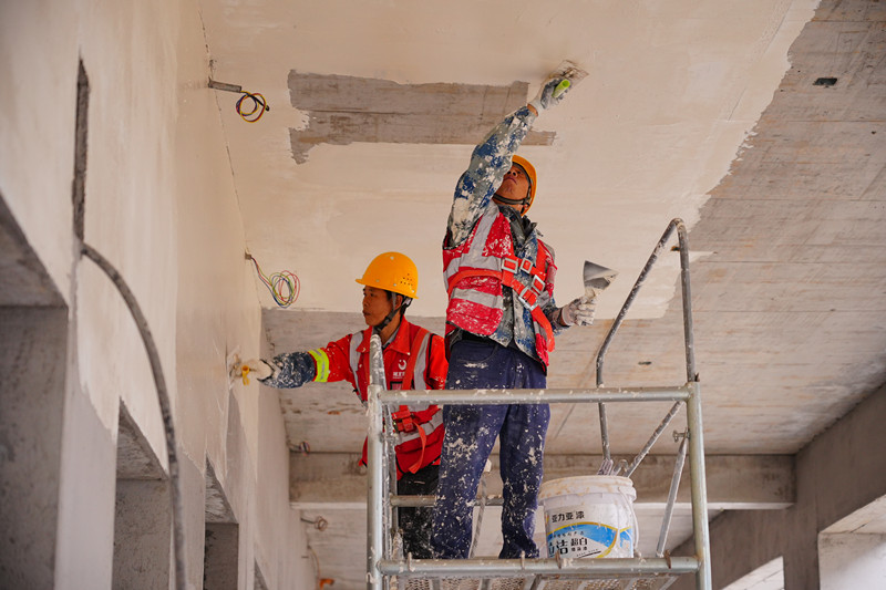 潜江新闻网讯(潜江市融媒体中心记者 关洪磊)近日,潜江中学新校区项目主体工程已全面完成,正式转入内部精装修及室外附属工程施工阶段。目前,天棚刷白、地面水磨石铺设、室内电线安装等分项工程正有序推进。