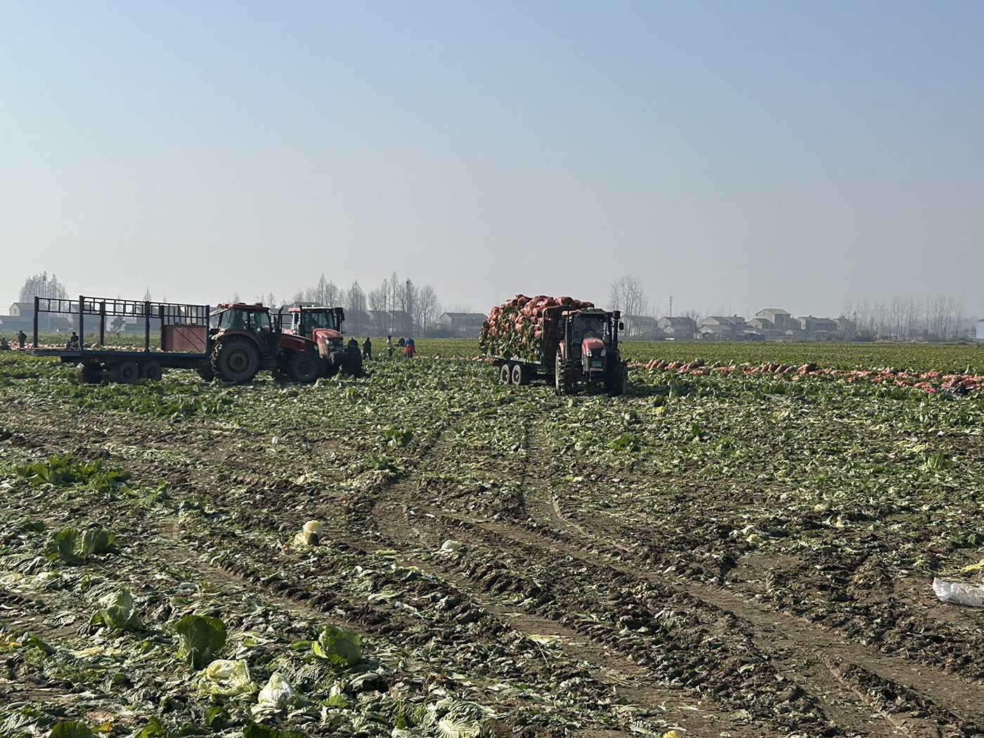 潜江新闻网讯(潜江市融媒体中心记者 王宇杰 通讯员 钟宇萍)1月14日,泰丰街道解放村的田间地头一片繁忙景象,满载新鲜大白菜的货车整装待发,即将奔赴千里之外的北方市场。这里是潜江市久保植保专业合作社的种植基地,自去年12月底起,基地便进入紧张的采收季。