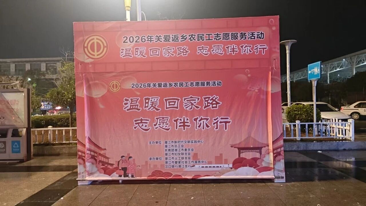 潜江新闻网讯(潜江市融媒体中心记者 王宇杰 通讯员 彭子俊)春节将至,年味渐浓。2月6日,我市2026年关爱返乡农民工志愿服务活动在潜江火车站拉开帷幕,为返乡过年的农民工朋友提供全方位暖心服务,传递工会组织的温暖与关怀。
