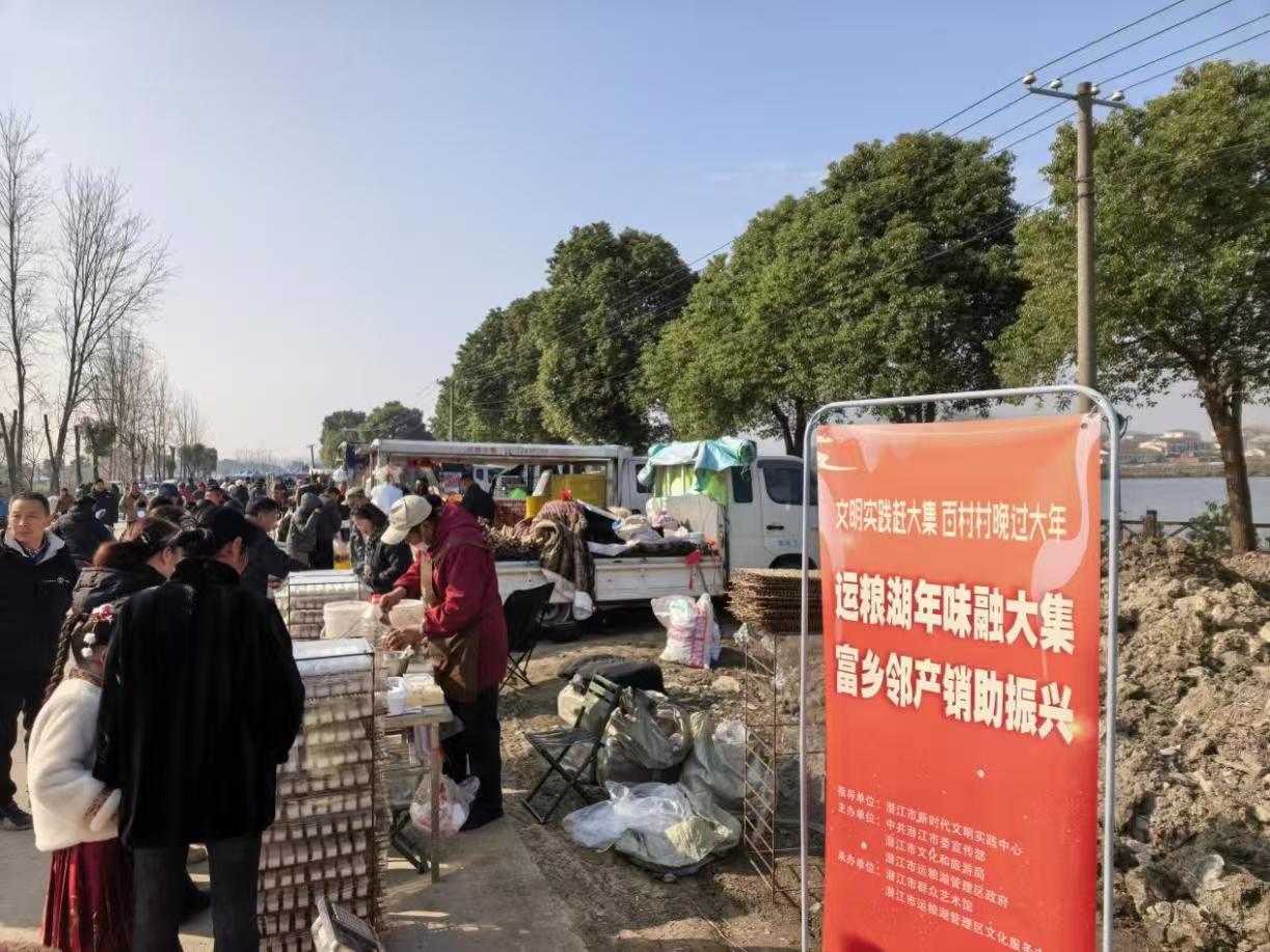 “逢八赶集”是运粮湖管理区2025年全新打造的节庆特色。每月逢八日(8日、18日、28日),当地定期举办集市,汇聚本地摊主与外地商户的特色商品,本土农产品、虾稻制品与外地特色小吃、手工艺品琳琅满目,吸引众多居民前来采购,成为乡村重要的民生窗口与文化阵地。