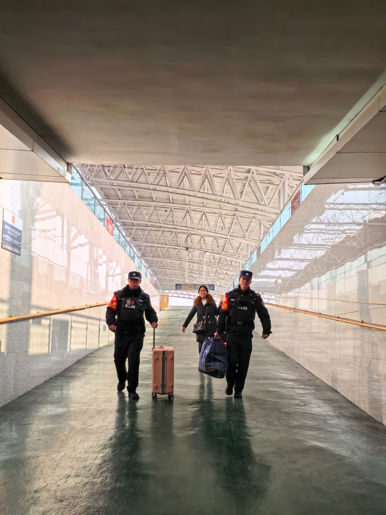 看到拄着盲杖的视障旅客,石君垚主动上前搀扶,全程引导进站、乘坐扶梯;遇到行动不便的旅客,夏浪捷抬起折叠轮椅,开辟绿色通道,让旅客出行一路畅通;遇见拎着大包小包、步履蹒跚的老人,民警张瑞立刻上前,接过沉重行李一路护送。