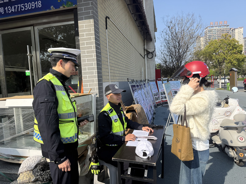 行动现场,交警在各主要路口设置宣传展板,向过往骑行市民普及交通安全法规。针对部分市民因出行匆忙未佩戴头盔的情况,民警现场提供免费头盔借用服务,高效解决群众临时出行的燃眉之急。