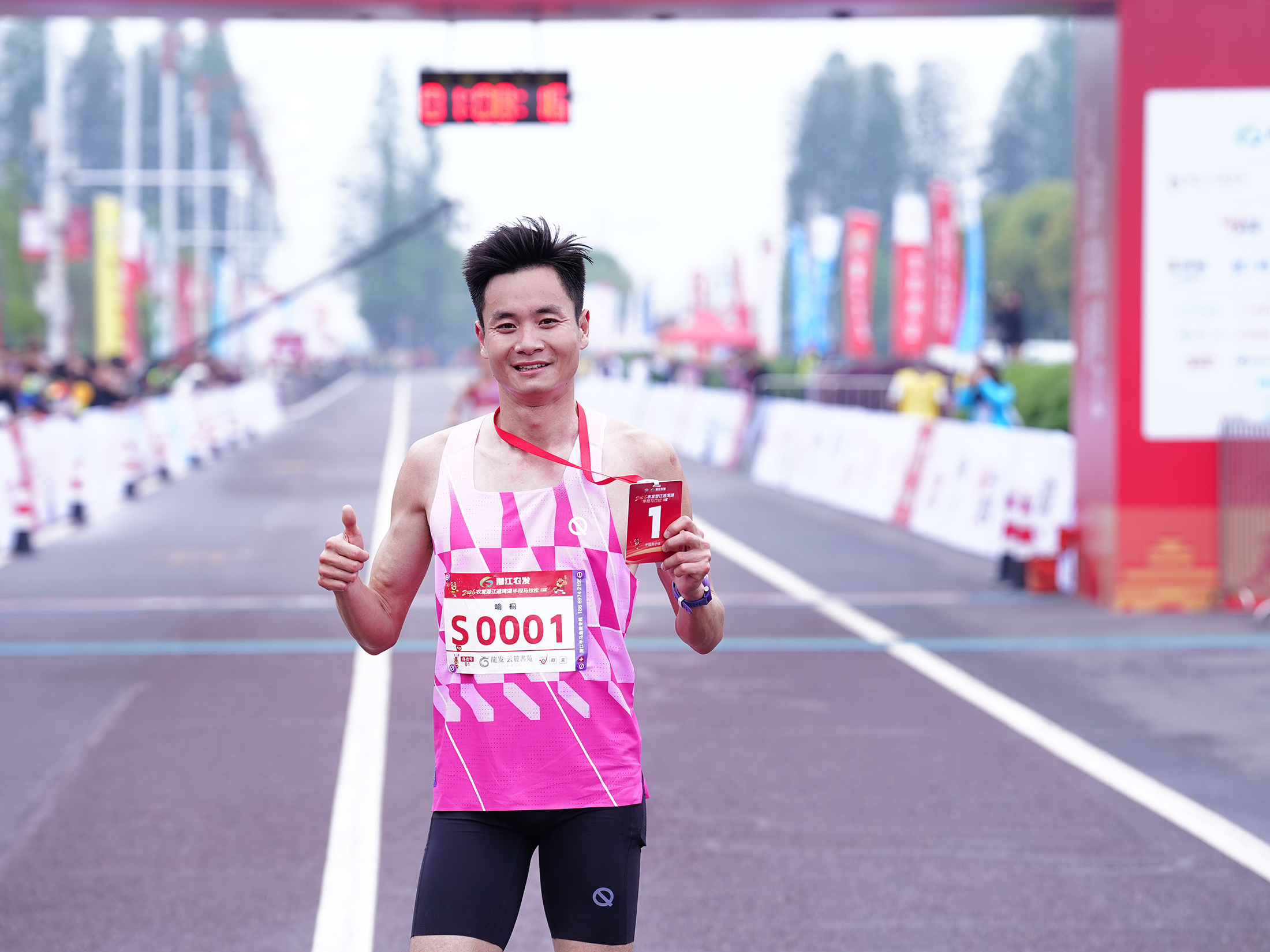 选手喻桐以1小时7分51秒摘得半程马拉松男子组桂冠