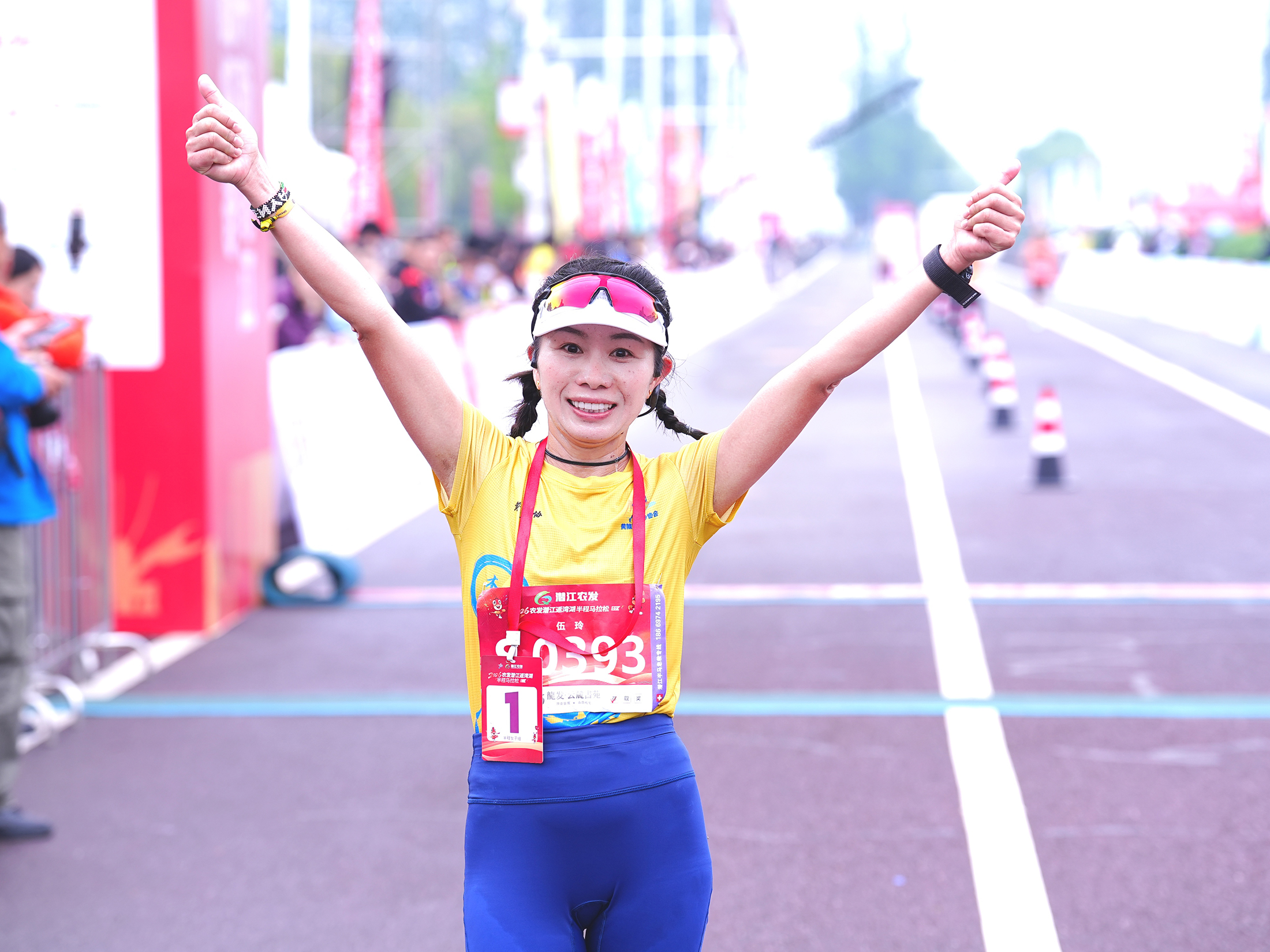 选手伍玲以1小时19分10秒斩获半程马拉松女子组冠军