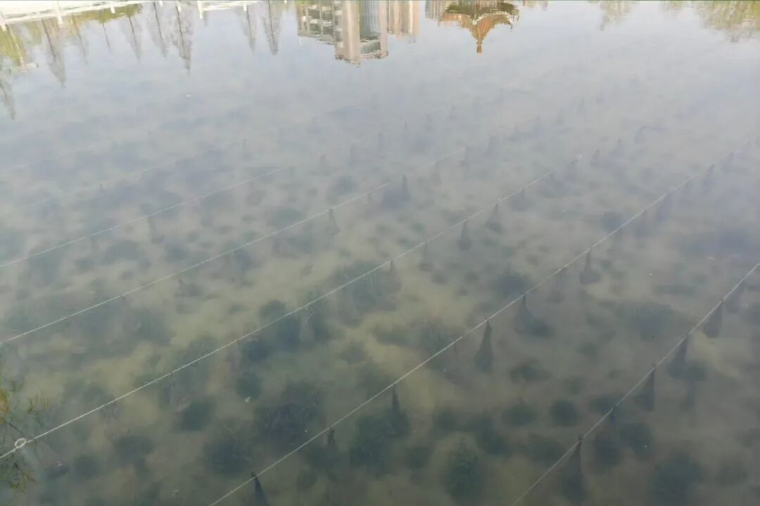 项目实施恰逢春季水体修复黄金期,施工团队坚持精准施策、不搞“一刀切”,结合水域地形、水质条件与生态基底科学制定方案。通过投放适配本地的净水贝类、鱼类、螺类,种植苦草等沉水植物,构建起多层次、强自净的“水下森林”生态系统,从源头净化水体。同时优化岸线景观、完善休闲设施,将治理区域打造成集生态、观赏、游憩于一体的口袋公园,成为市民休闲打卡的新去处。