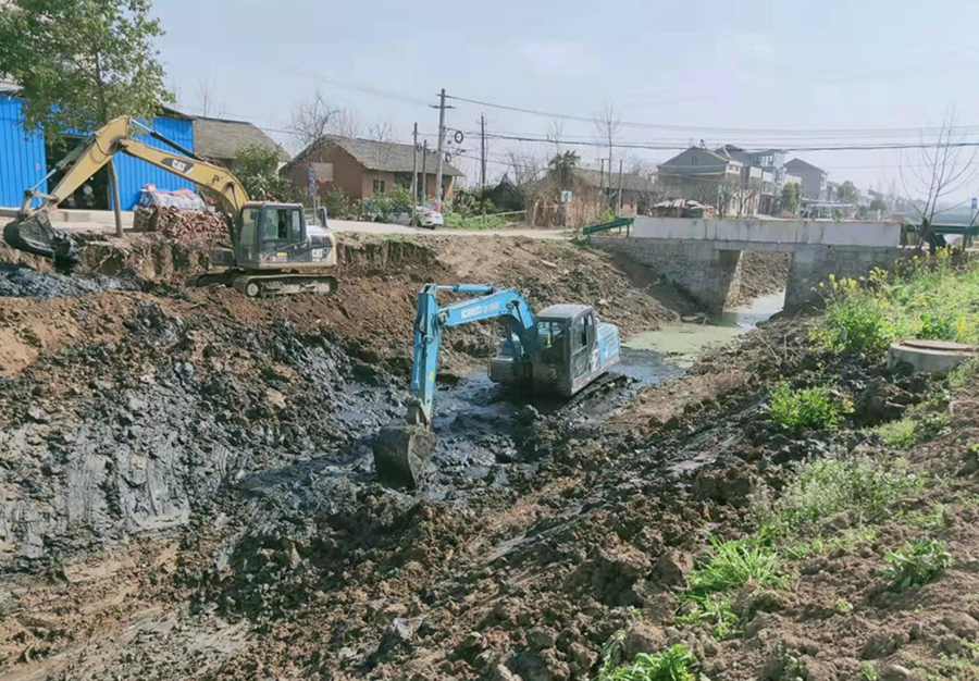 与此同时,彭鲁村也有2台大型挖土机正在幸福河清淤。眼下,正是春耕备耕的大好时间,为保障农田足量灌水,也为提高水质、改善村容村貌,该村组织专业清淤队伍,动用挖机2台,对3、4、5组河道淤泥进行清理,对河道拓宽加深,让幸福河水更清、景更美。
