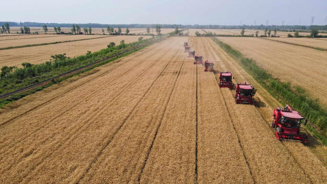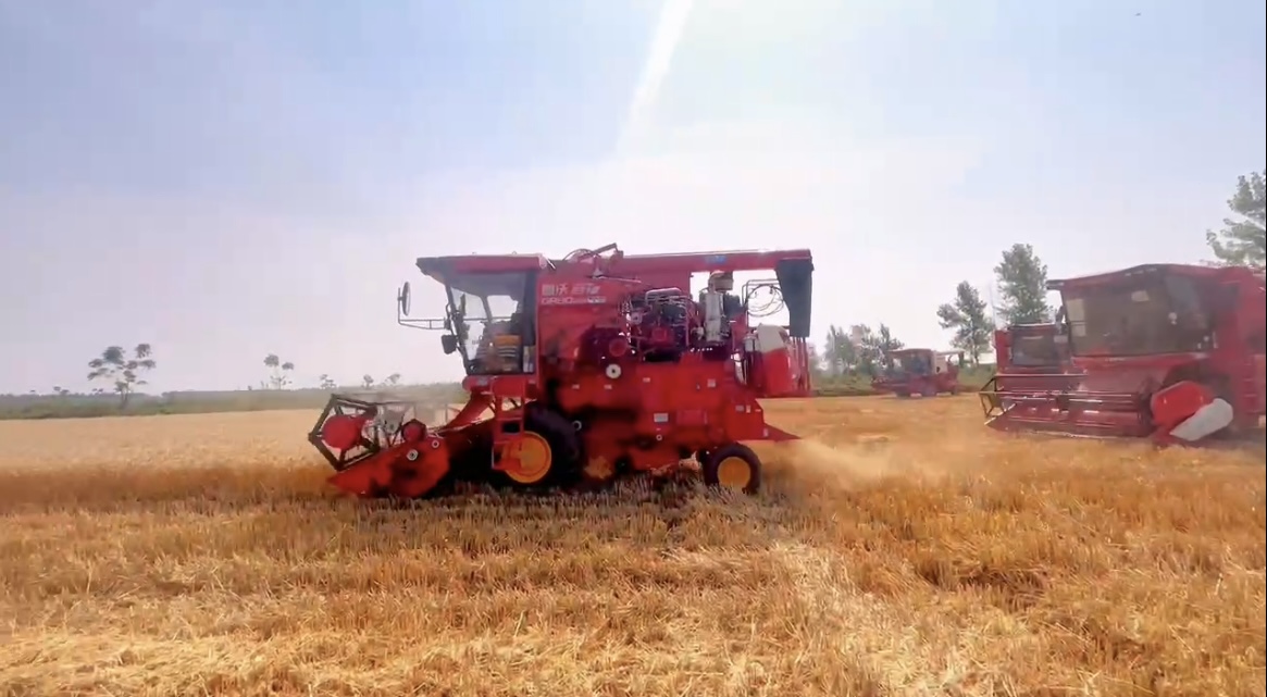 潜江新闻网讯(潜江市融媒体中心记者 王宇杰 通讯员 王宇)现代农业离不开现代化科技机械,小麦收割,联合收割机便是主力军。近日,位于广华寺街道的潜江碧农智慧农业有限公司万亩小麦基地里,二十多辆收割机同时作业。一台台收割机在麦田里来回穿梭,收割、脱粒、除杂一气呵成,金黄色的麦子倒入车厢里,及时运走,现场一派丰收景象。