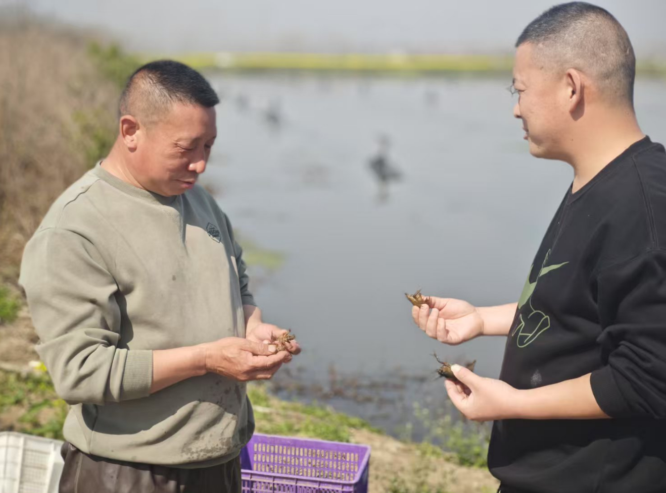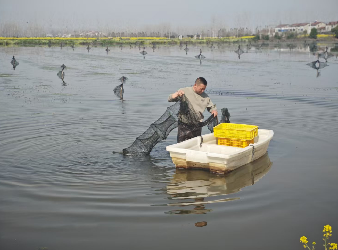 湖面上,成群的鱼儿穿梭往来,虾农们扯着嗓子吆喝、打趣,丰收的喜悦溢满水乡。田埂上,收购商的车辆早早排成长龙,他们眼疾手快,像寻宝似的甄别虾苗品质,生怕错过一丁点儿优质货源。