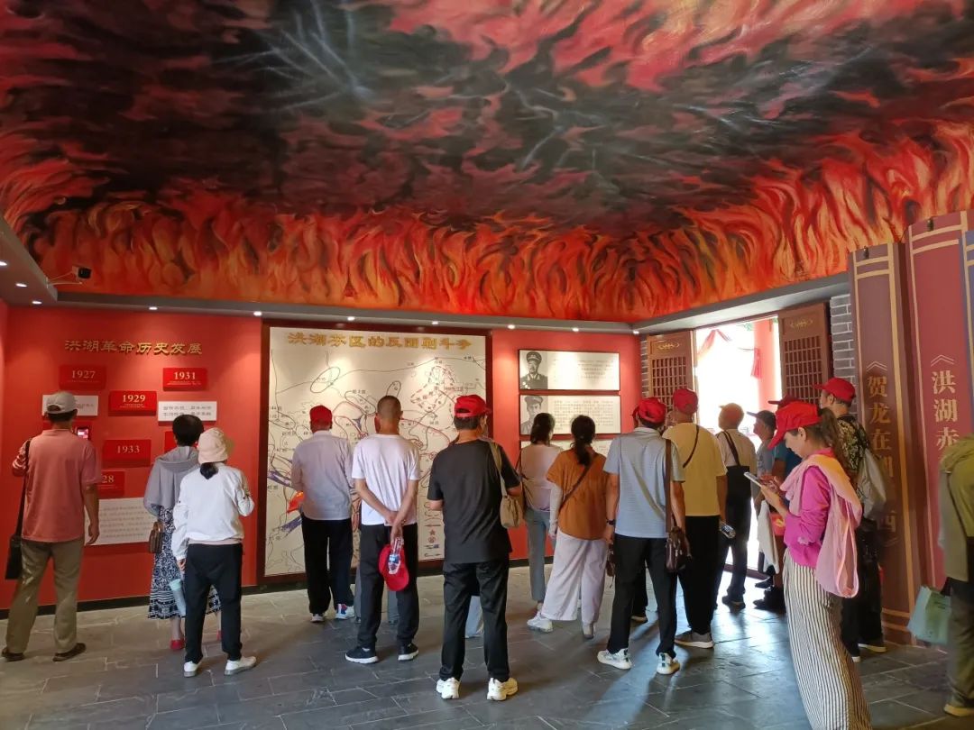 随后,党员们走进瞿家湾老街,踏着青石板路,参观革命旧址群。在讲解员的深情讲述中,大家认真观看历史照片、珍贵文物,详细了解湘鄂西革命根据地的创建历程和革命先烈的英勇事迹。斑驳的桌椅、泛黄的文件、简陋的生活用品,无不诉说着当年艰苦卓绝的斗争环境。老党员们时而驻足凝视,时而低声交流,深切感受革命先辈坚定的理想信念和不怕牺牲的崇高精神。