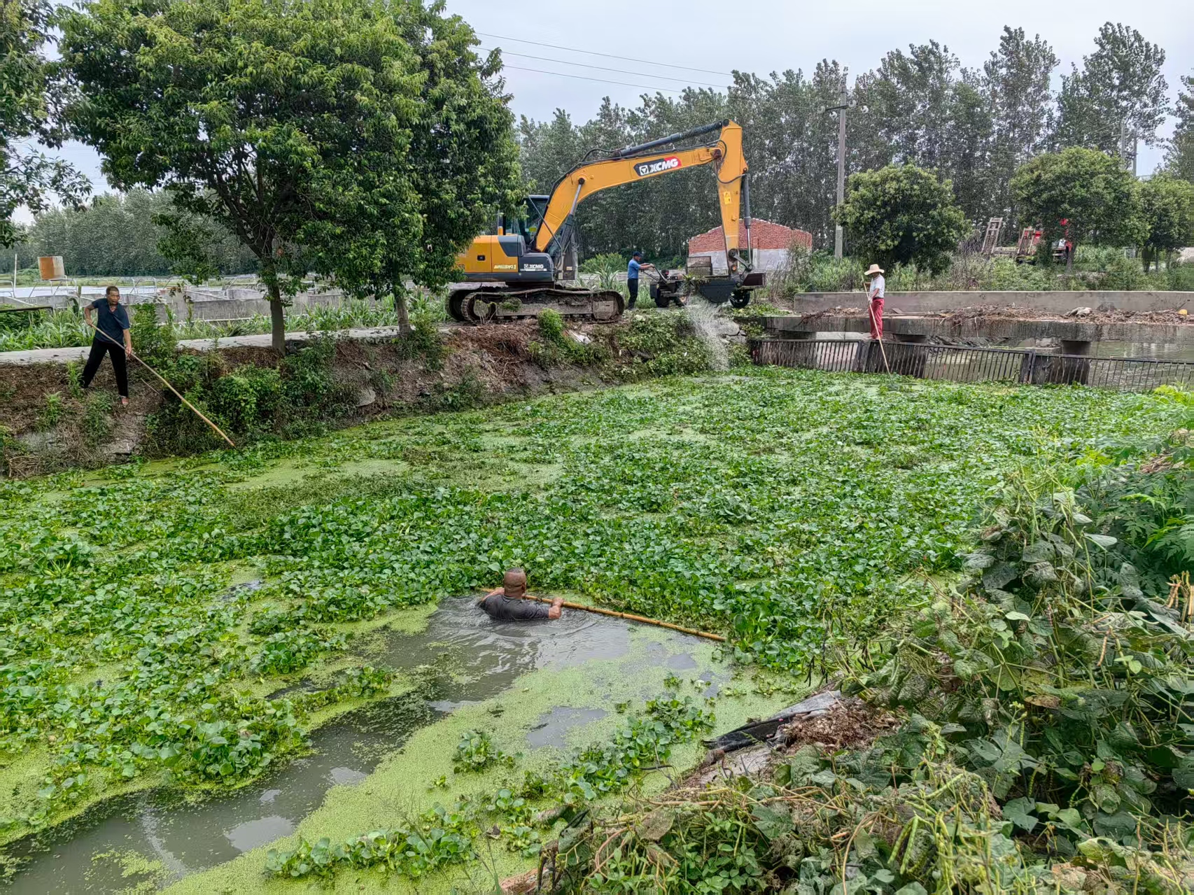 针对泵站河道水葫芦、杂草丛生影响行洪及水体质量的问题,流塘办事处组织专业人员开展专项清理行动。工作人员利用长柄捞网、镰刀等工具,对水面漂浮物及沿岸杂草进行彻底打捞和清运,尤其对泵站进水口、闸门等关键部位进行了细致清理。此次行动累计清理水葫芦及杂草30余车,整治河道近4千米,显著提升了河道通畅度与水环境质量,获得了居民的一致好评。