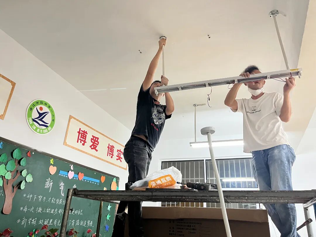 潜江新闻网讯(潜江市融媒体中心记者 周莹 吴曾爽)夜幕下,市园林第一小学三年级的教室内灯火通明,工人们正有序开展LED护眼灯安装调试工作。连日来,该校利用晚间非教学时段施工,加速推进教室光源升级,通过硬件设施的科学化、精细化改造,为学生的视力健康筑牢“第一道防线”。