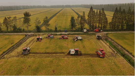 潜江新闻网讯(潜江市融媒体中心记者 关洪磊)金秋时节,潜江碧农智慧农场迎来水稻丰收季,10028亩稻田收割工作有序推进。据悉,该农场依托智慧农业云平台,提前防灾减损、精准管理,5人即可照料万亩“吨粮田”。