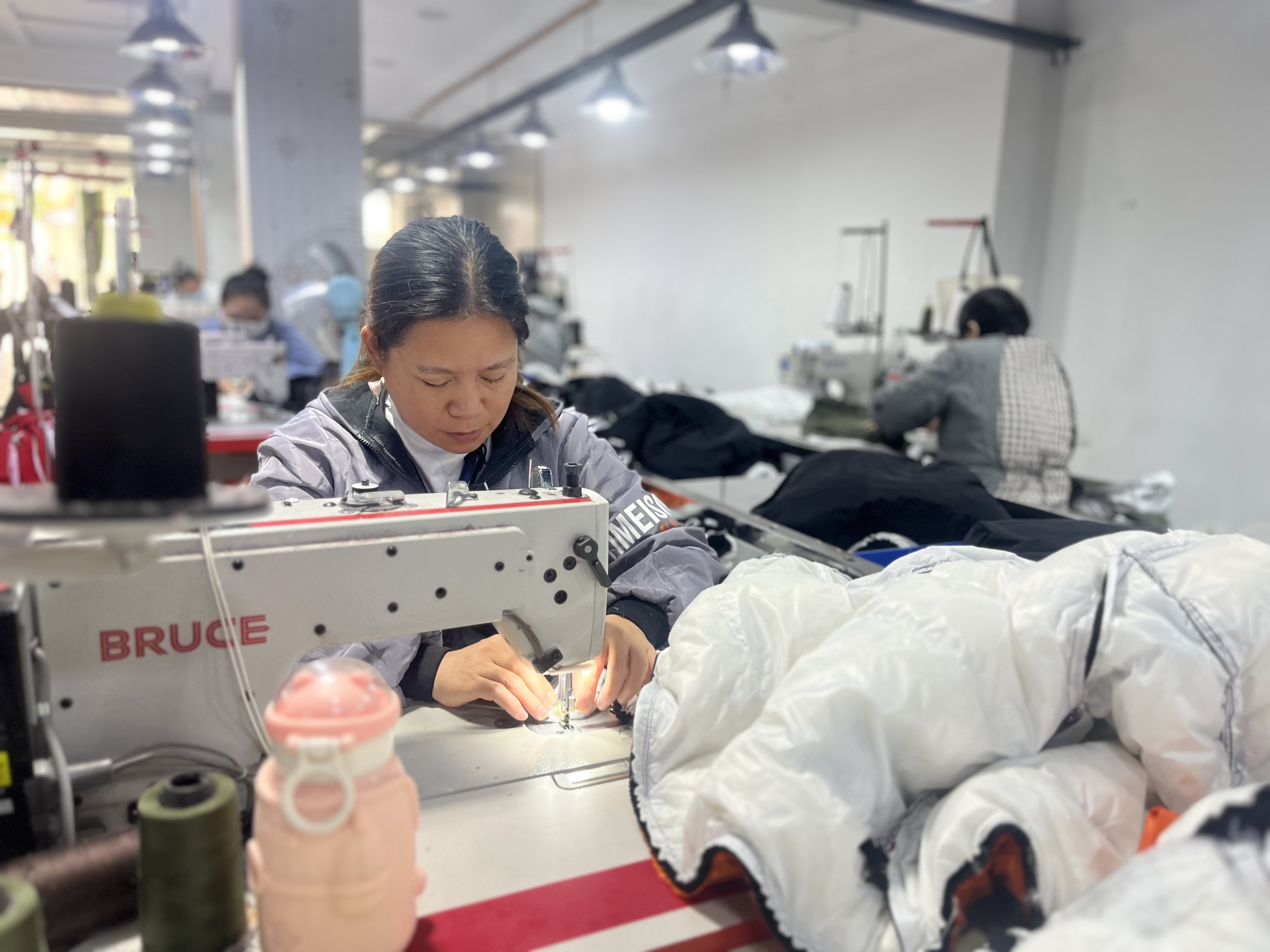 “目前工厂拥有近50名员工,月均生产羽绒服、棉衣等衣服7000余件,月产值约50万元,产能与效益持续稳步提升。”周中峰说。