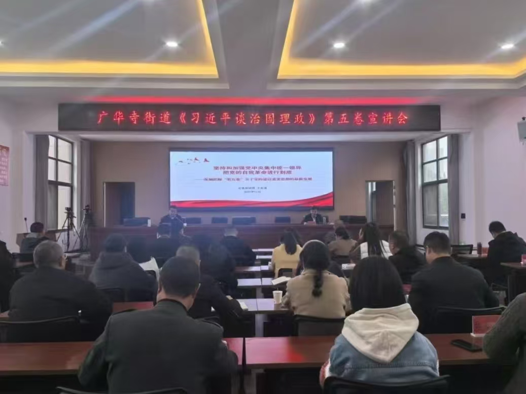 潜江新闻网讯(潜江市融媒体中心记者 王宇杰 通讯员 杨文杰)11月6日,广华寺街道召开学习贯彻《习近平谈治国理政》第五卷专题宣讲会,街道全体机关干部、各村(社区)负责人、入党积极分子代表齐聚一堂,共同接受思想洗礼、汲取奋进力量。