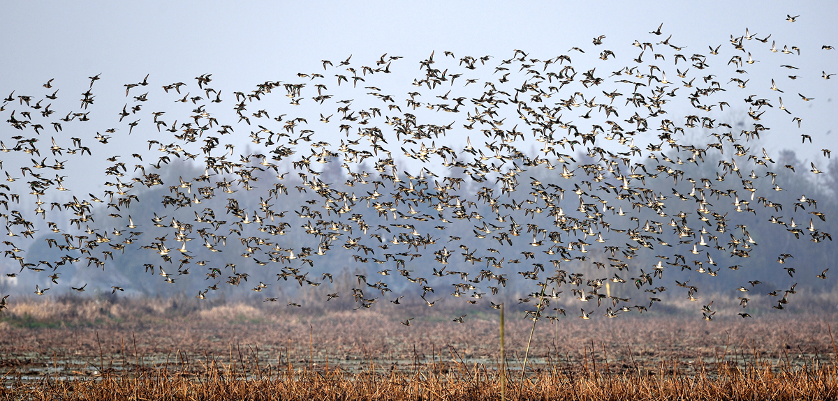 一鸟之变,见生态之兴;一湖之美,映发展之道。如今,水波潋滟的返湾湖,草木含章、万鸟翩跹,青头潜鸭悠然游弋,花脸鸭集群翩飞,各类水鸟或栖或鸣、或飞或逐,共同绘就一幅“万类霜天竞自由”的生态画卷。