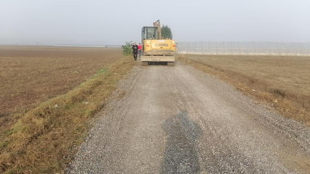 方案确定后,社区及时公开工程细节,主动接受群众监督。由党员、居民代表和农户组成的“民主监督小组”每日巡查工地,紧盯材料标准和施工质量,确保每一笔资金都用在刀刃上。目前,3900米碎石路段已基本完成,800米硬化路段的路基铺设正在有序推进。