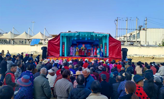 演出尚未开场,现场已人头攒动。老人们搬着小板凳提前占位,孩子们在家长身旁好奇张望,邻里间热切寒暄,热闹氛围驱散了冬日凉意。下午2时8分,欢快的锣鼓声响起,演出正式拉开帷幕。舞台上,演员们身着绣工精美的戏服,头戴玲珑别致的头饰,扮相栩栩如生,唱念做打功底扎实,唱腔时而高亢激昂、穿云裂石,时而低回婉转、如泣如诉,清晰传至每个角落;灵动身段与传神眼神配合悠扬伴奏,将经典角色演绎得入木三分。观众们目不转睛,掌声与喝彩声此起彼伏。